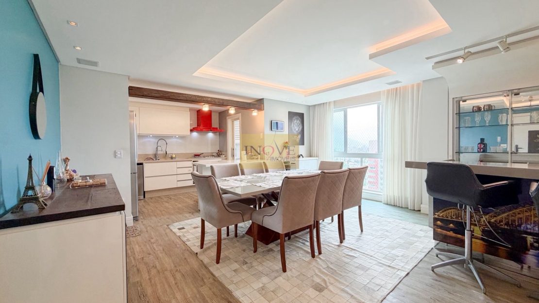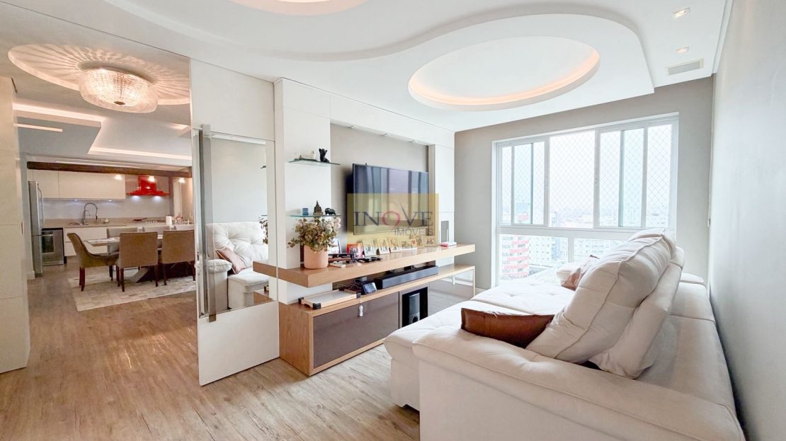 APARTAMENTO SEMIMOBILIADO com 109 m² privativos, 01 suíte + 02 dormitórios com 02 vagas de garagem.