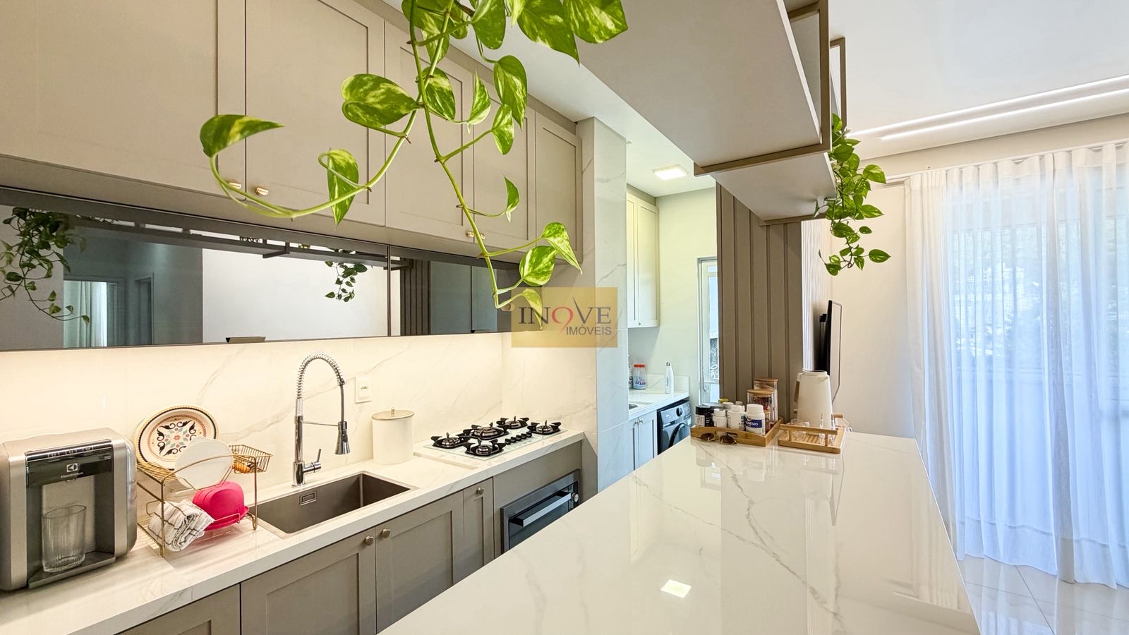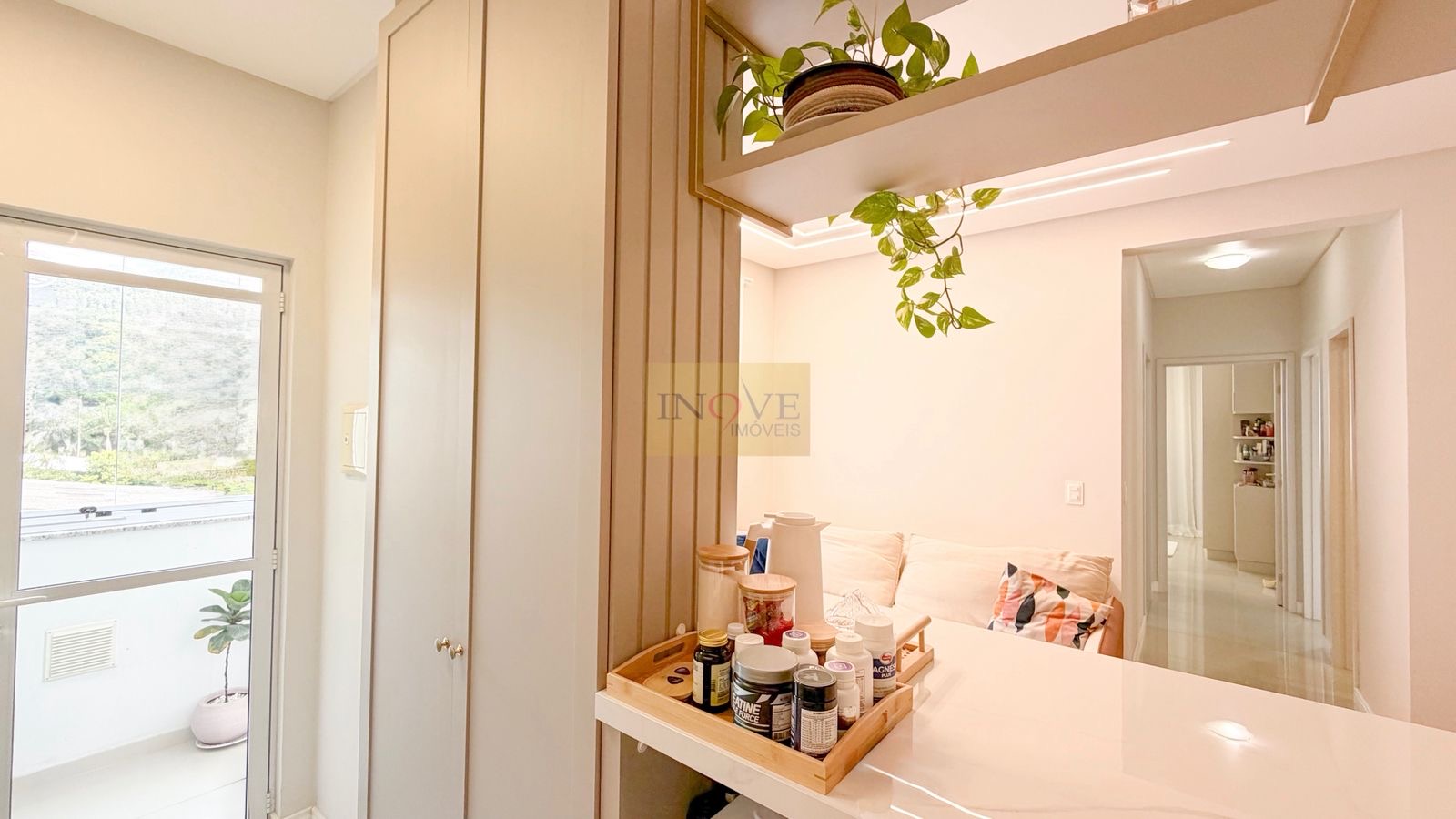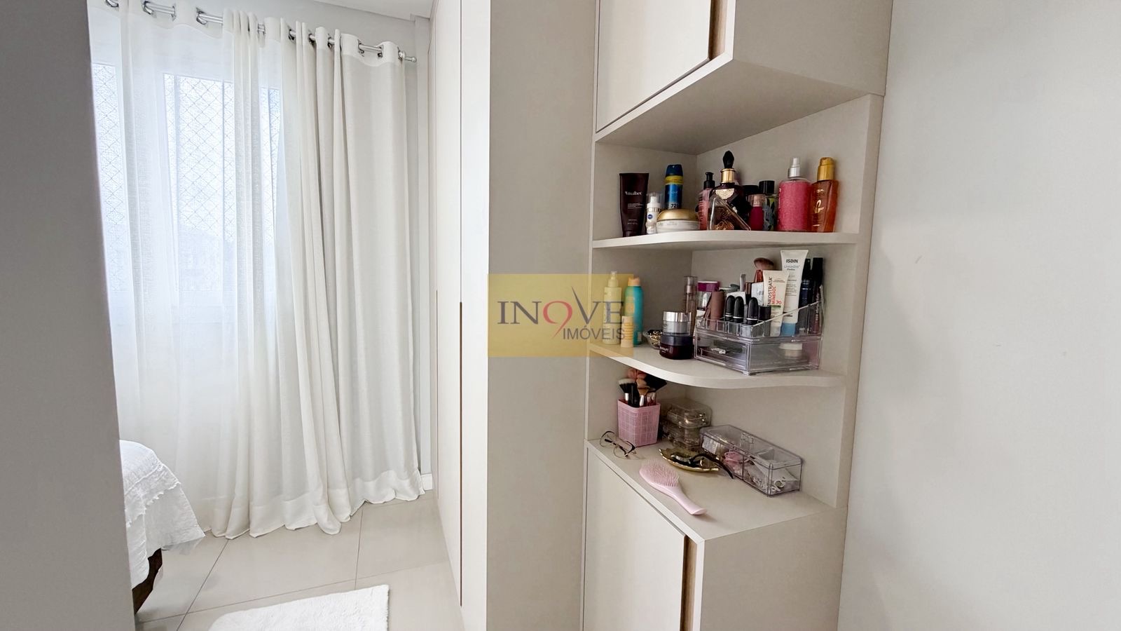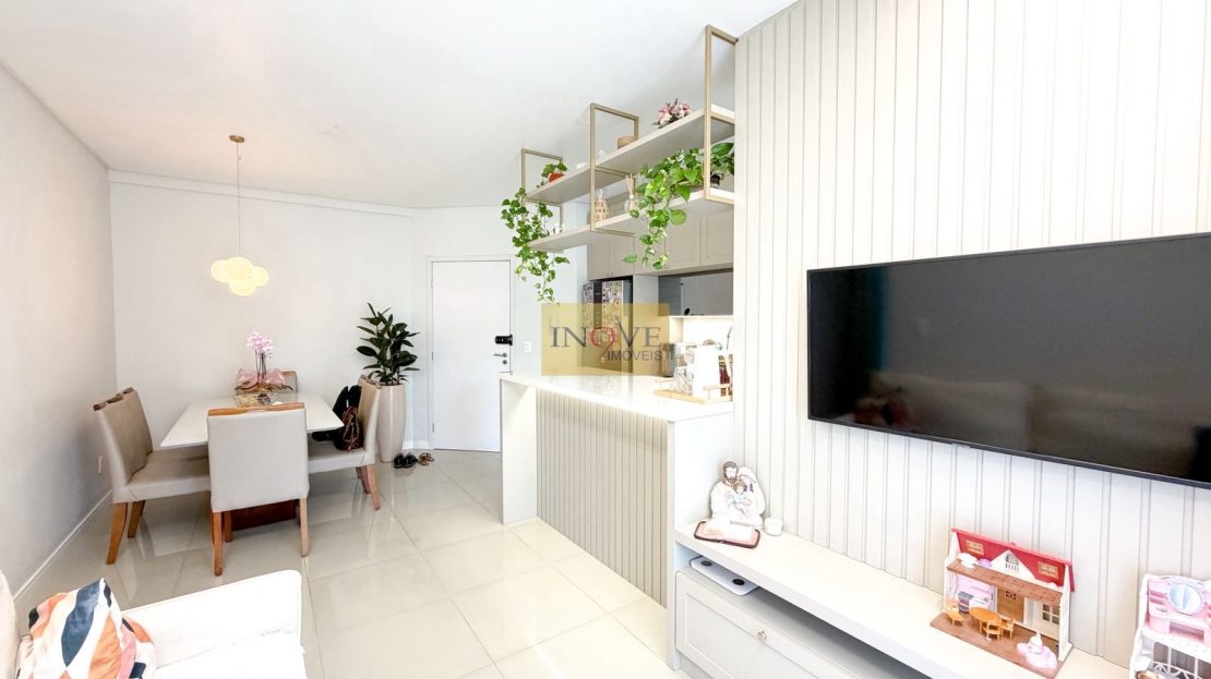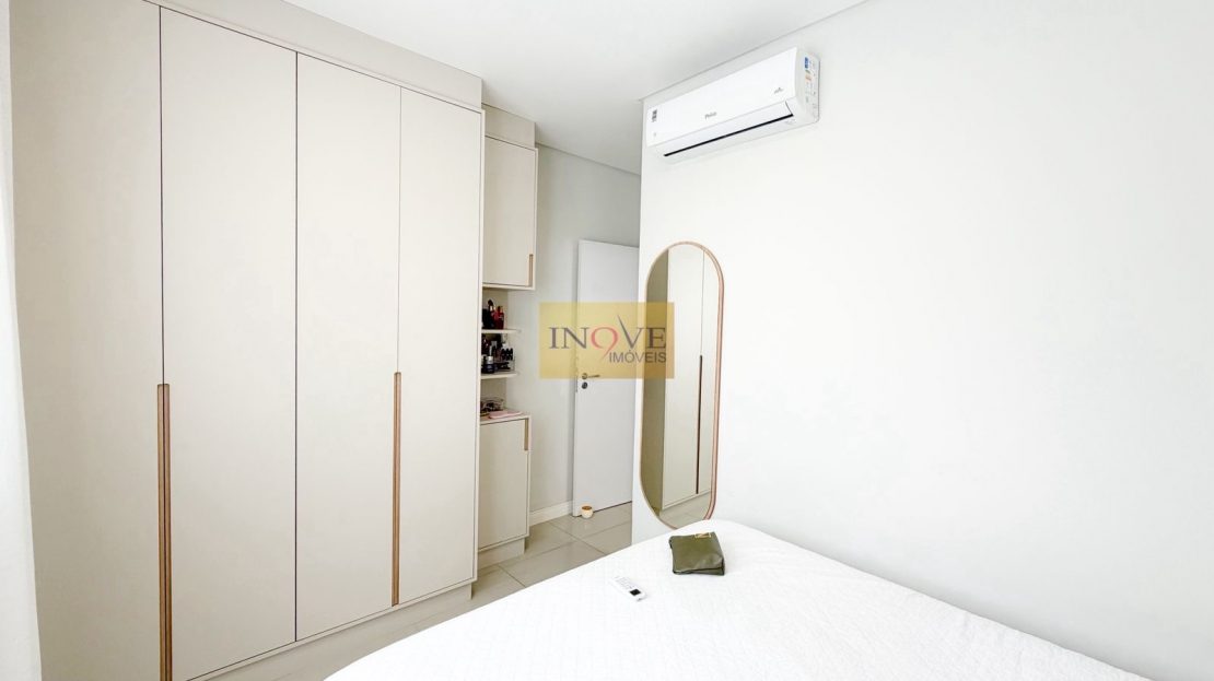 Ficam todos os móveis planejados, eletrodomésticos embutidos, mesa de jantar com 6 cadeiras, sofá, 2 aparelhos de ares condicionado split, lustres, luminárias e cortinas. O apartamento conta com isolamento acústico nos dormitórios.